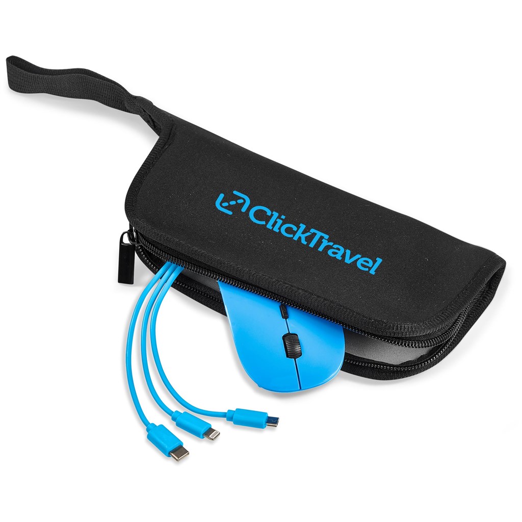 This clever idea brings you a selection of workspace essentials including a wireless mouse and a 3-in-1 charging cable packaged in a neoprene pouch, which doubles up as a mouse pad.
