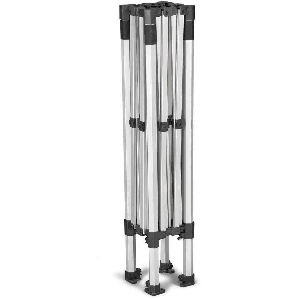 This gazebo is perfect for brand activations, product launches, sporting events and mobile retail shops to mention a few. The Petite Gazebo features extra collapsible legs that slide in making it compact and portable allowing for easy transportation.
